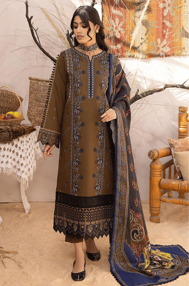 Bin ilyas - Winter 3PC Dhanak Embroidered Suit - BN3351